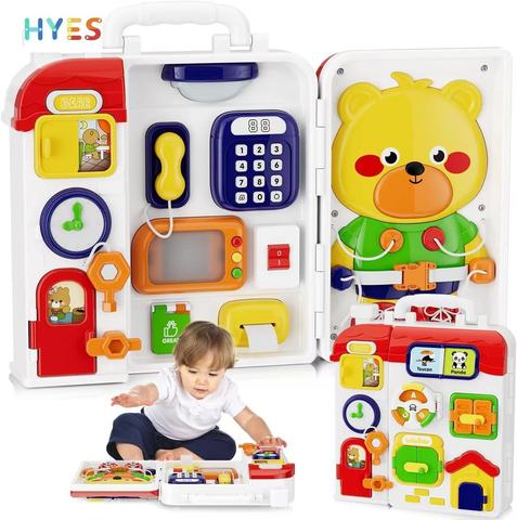 HUIYE 뉴 몬테소리 바쁜 보드 2 세 이상 유아용 LED 조명이 있는 감각 장난감 활동 및 음악 향상 교육 완구