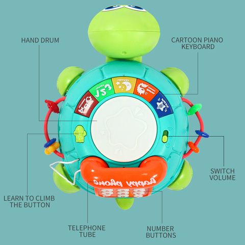 Huiye-coche eléctrico de juguete con forma de tortuga, Juguete Musical de inducción para caminar y gatear